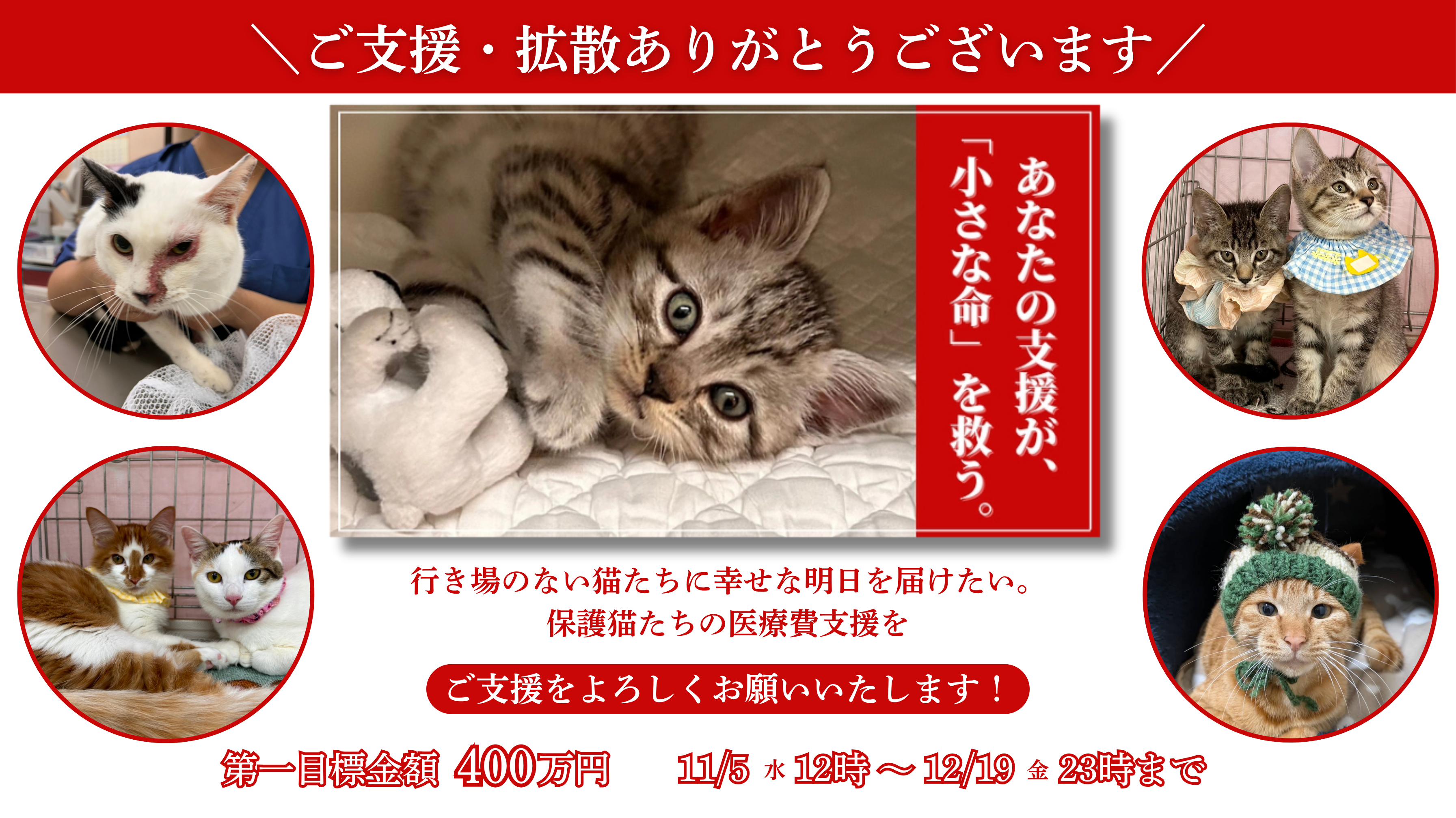 NPOくすのきでは年々、保護数が増加しており難病を抱える子や重い障害をもつ子、介護を要する子や虐待により心に傷を持つ子など様々な子達が数多く暮らしています。血液検査やワクチンの接種、不妊手術等基本的な医療費や個々に持つ病気の治療費、それぞれに適した飼養環境を維持する為に一匹の子にかかる費用は相当額に達します。日々を一生懸命に生きている子達のために『私に何かできることは?』とお考えの方やご自身では飼う事ができない環境の方など是非ともNPOくすのきの応援隊として温かい愛情をこの子達にそそいであげて下さい。